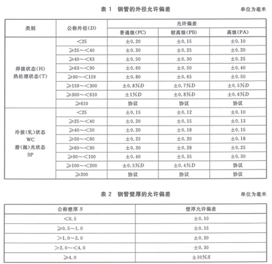 機(jī)械結(jié)構(gòu)專用精密不銹鋼管對(duì)管材的尺寸偏差為±20mm,不圓度小于等于公稱外徑的1.2%,鋼管兩端面應(yīng)與鋼管軸面垂直,并且平頭;另外管徑偏差和壁厚偏差都有著嚴(yán)格要求: